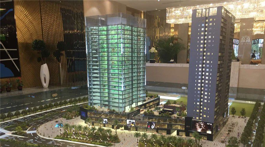 潮商广场分两座塔楼,A、B座为商业性质,40年产权,形成不同单元模块。其中,项目A座按5A甲级写字楼标准设计,标准层高4.2米,共23层;B座为微型空间,各单元模块较小,标准层高3.3米,共29层,为微型企业提供环境。 潮商广场内设1-3层商业建筑,沿建筑周边设置商业骑楼,形成特色商铺;二层设置内部U形商业动线,沿商业动线形成商铺及集中商业;三层设置架空楼层,内嵌商业house,满足餐饮、娱乐等要求。四、潮商广场周边配套